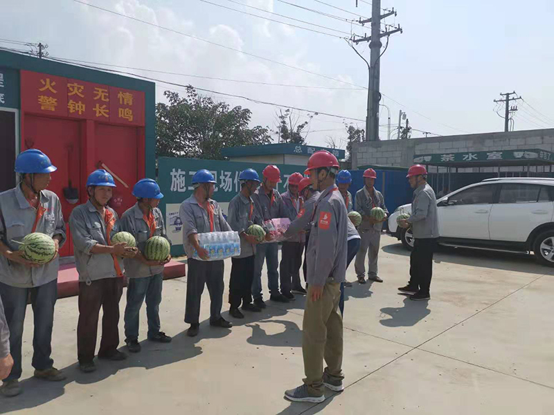 盛夏,烈日炎炎,热浪滚滚,节节攀升的气温让所有人都体会到了骄阳的威力。连日来公司领导来到施工一线,向奋战在一线的工作人员送去慰问并将公司准备好的高温慰问品送到员工手中让一线的员工在酷暑中感受舒心凉意。